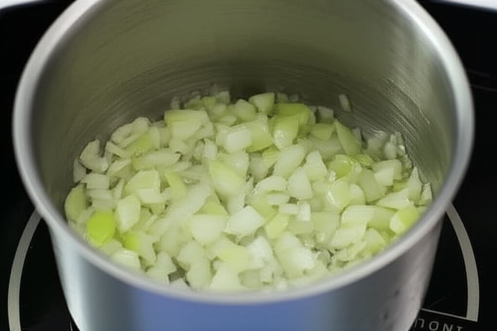 Cebule i czosnek posiekaj na bardzo małą kostkę. Potem zrumień na gorącym oleju najlepiej w rondelku.