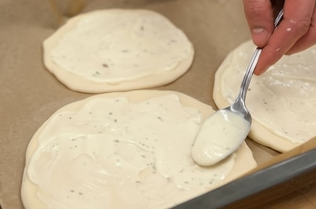 W tym momencie możesz już nagrzać piekarnik do 250°C w opcji góra-dół. W międzyczasie zajmij się przyrządzeniem sosu. W niewielkim rondelku połącz Fix Spaghetti Carbonara Knorr z 300 mililitrami śmietany, doprowadź do wrzenia i odłóż na moment. Gdy ostygnie, posmaruj sosem krążki do pizzy.
