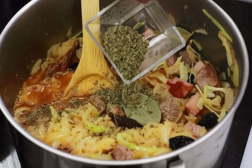 Aby wzbogacić smak bigosu, dodaj różne rodzaje mięsa – dziczyznę, kaczkę czy gęś. Przypraw świeżo zmielonym pieprzem, kminem i liśćmi laurowymi. Nie zapomnij o grzybach – najlepiej borowikach, choć kurki lub pieczarki również się sprawdzą. Suszone śliwki dodadzą słodkawej nuty, idealnie równoważącej kwaskowatość kapusty.