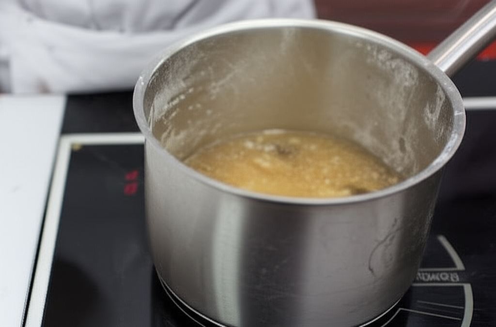 Przygotuj zasmażkę z mąki i smalcu, wlej do bigosu. Gotuj na niskim ogniu do miękkości, mieszając od czasu do czasu.