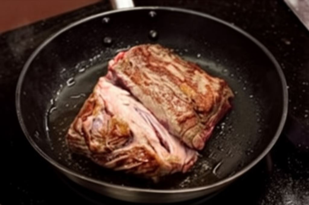 Mięso opłucz, pozbądź się błon i żyłek, a następnie osusz. Potem zrumień je na patelni i umieść w podłużnym garnku. W innym garnku sporządź bulion – rozpuść Bulionetka wołowa Knorr w 500 mililitrach gotującej się wody.