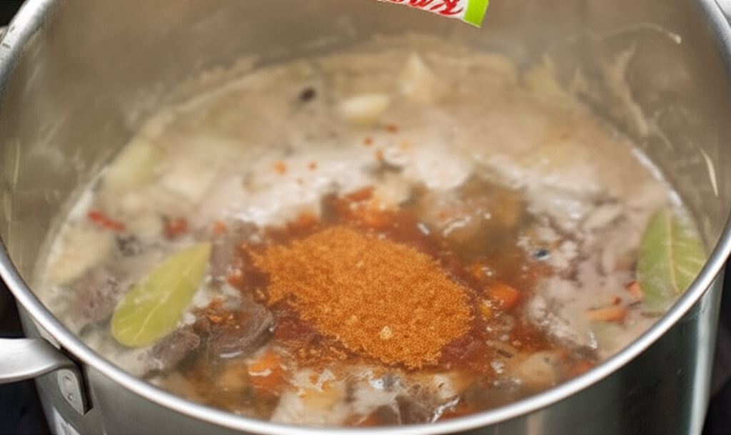 Do przesmażonych składników dolej wodę i wsyp Knorr Naturalnie Smaczne - Gulasz. Wszystko mieszaj aż do zagotowania, potem duś na małym ogniu pod przykryciem przez około 60 minut, dopóki mięso nie stanie się miękkie.