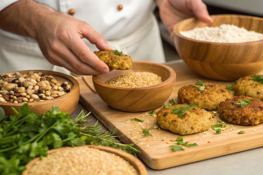 - Mąka z ciecierzycy: wystarczy 2/3 ilości bułki tartej ze względu na silniejsze właściwości wiążące