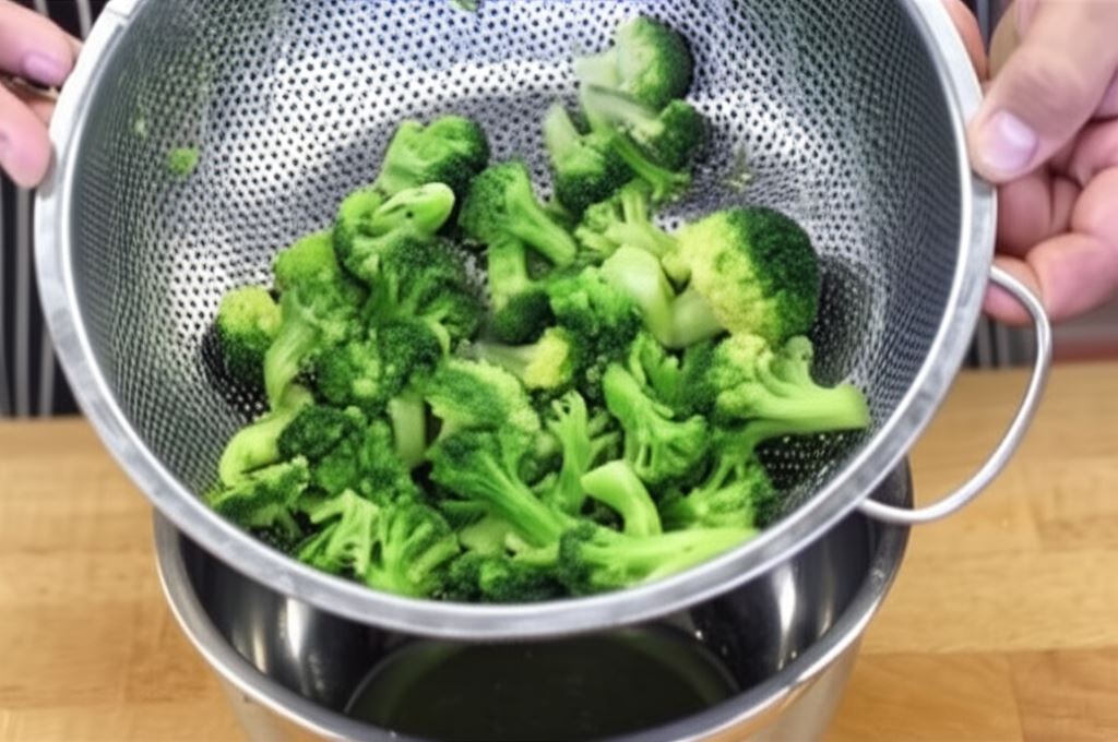 Świeże brokuły podziel na mniejsze różyczki i ugotuj aż będą miękkie. Mrożone brokuły gotuj od razu po otwarciu opakowania przez 1 minutę. W obu przypadkach brokuły odcedź.