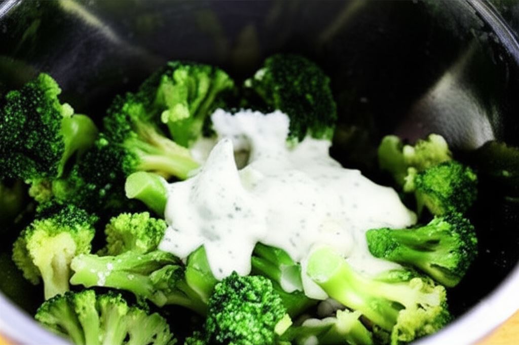 Brokuły połącz z ciepłym sosem i umieść na talerzu.