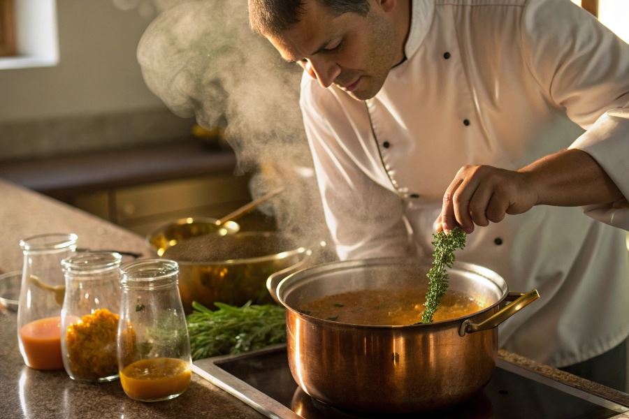 Profesjonalni szefowie kuchni stosują zaawansowane metody intensyfikacji smaku sosów bulionowych:
