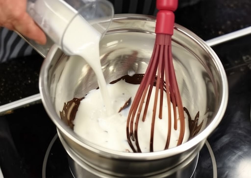 Czekoladę pokrusz, wsyp do miseczki, wlej 100 ml soku kokosowego, włóż do mikrofalówki lub zanurz miseczkę w kąpieli wodnej. Ogrzewaj aż do kompletnego roztopienia się czekolady.