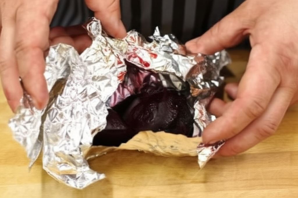 Do przygotowania tego ciasta najlepiej wybierać nieduże buraki, które szybciej się pieką i są łatwiejsze w obróbce. Pieczenie buraka w folii pozwala zachować jego intensywny kolor i wartości odżywcze, a jednocześnie wydobywa naturalną słodycz warzywa.