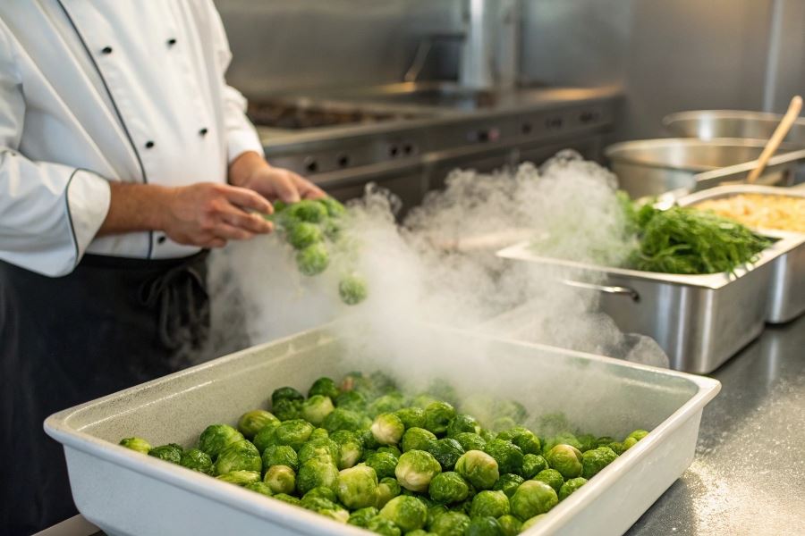 Blanszowanie to jedna z najskuteczniejszych metod eliminacji goryczy. Polega na krótkim (2-3 minuty) zanurzeniu brukselki w mocno osolonej, wrzącej wodzie, a następnie natychmiastowym schłodzeniu w lodowatej kąpieli. Ten szok termiczny zatrzymuje proces gotowania i zachowuje soczystość, jednocześnie eliminując większość gorzkich związków.