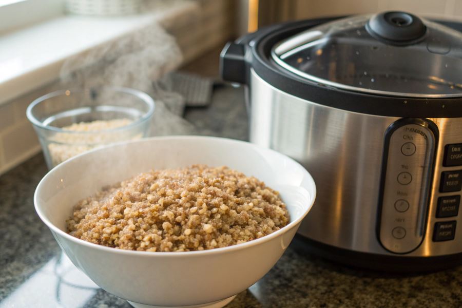 Sekret idealnej kaszy gryczanej: Po zakończeniu programu gotowania pozostaw kaszę w multicookerze na funkcji „Podgrzewanie” przez dodatkowe 10 minut. Dzięki temu każde ziarenko będzie perfekcyjnie ugotowane i puszyste.