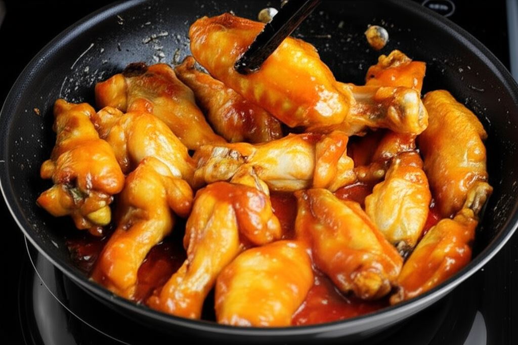 Skrzydełka umieść w sosie i ostrożnie zamieszaj.