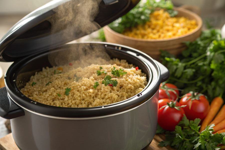 Nadmiar ugotowanego bulguru doskonale sprawdza się jako składnik zapiekanek – wymieszaj go z warzywami, serem i jajkiem, a następnie zapiecz w multicookerze na funkcji „Pieczenie”. Można również dodać go do zup jako zagęstnik lub wykorzystać jako bazę do kotlecików warzywnych, które następnie usmażysz na funkcji „Smażenie”.