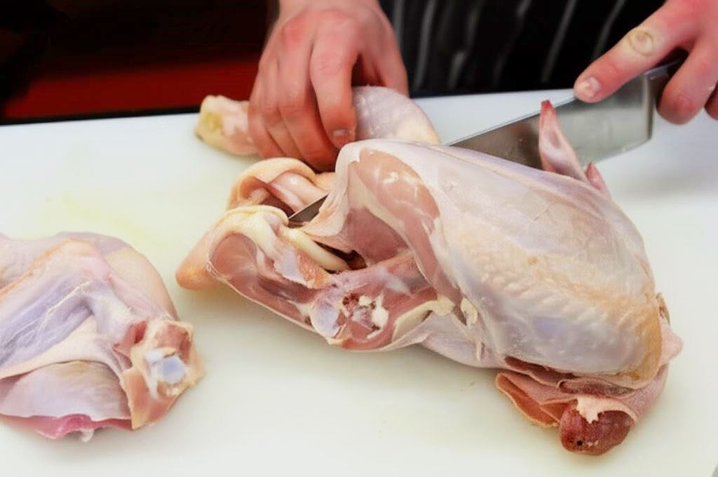 Kurczaka oczyść z wszelkich wnętrzności, tłuszczu i opłucz. Potem podziel na mniejsze kawałki.