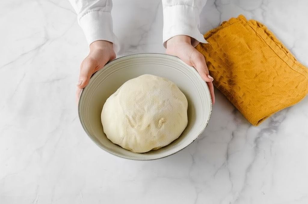 Kształtujemy z ciasta kulkę. Nakrywamy ściereczką i zostawiamy do wyrośnięcia na 1,5 h.