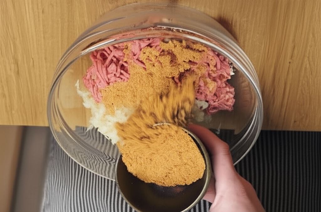 Kapustę drobno poszatkuj i wymieszaj w głębokiej misce z mięsem, fixem Knorr i wodą.