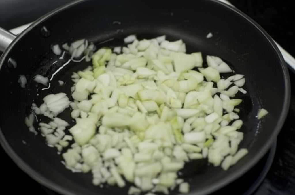 Cebule i czosnek posiekaj na drobne kawałki. Potem zrumień je na oleju.