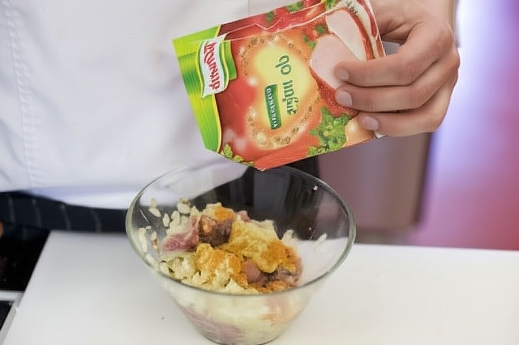 Do masy mięsnej wsyp cebulę z czosnkiem, sos worchester, musztardę i przyprawę Knorr. Wymieszaj starannie całość.