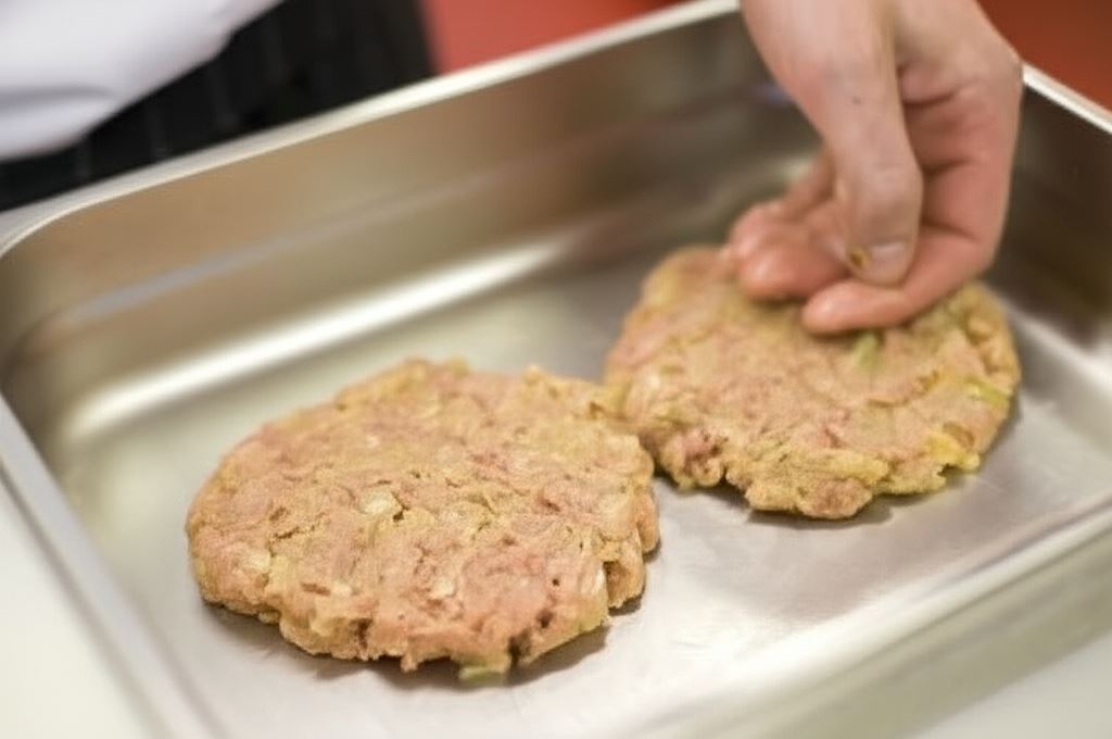 Z mięsa uformuj najpierw kulki, każda o masie 100-120 gram, a potem okrągłe placuszki. Wstaw je do lodówki na około 2 godziny.