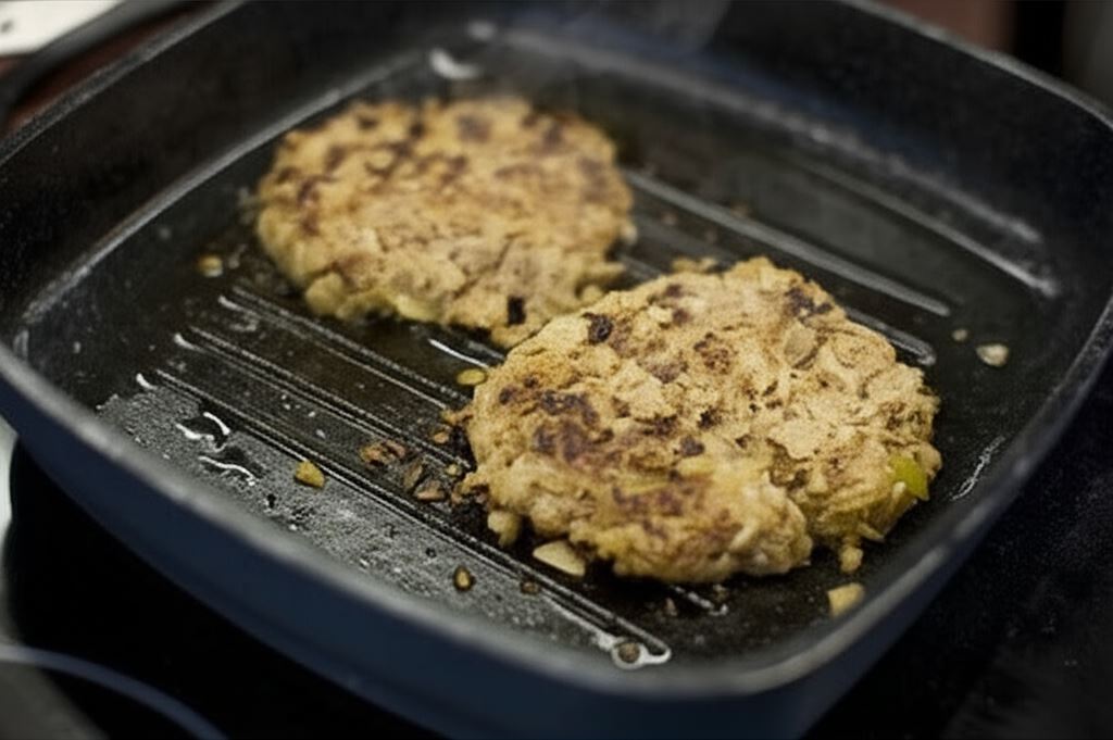 Po upływie tego czasu mięso grilluj przez około 6-8 minut z każdej strony. Burgery powinny mieć lekko różowy środek. Serwuj je same lub w tradycyjnej bułce z ulubionymi dodatkami.