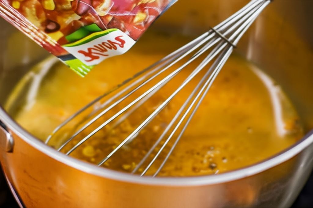 Wymieszaj Fix Chili con carne Knorr z wodą, połącz i doprowadź do wrzenia w rondelku. Potem przelej go na patelnię zawierającą warzywa, gotuj całość na małym ogniu (bez pokrywki) aż płyn odparuje. Ten farsz będzie doskonały jako składnik wegetariańskiego burrito.