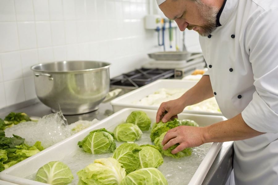 Optymalny czas blanszowania to 8-12 minut dla kapusty białej i 5-8 minut dla kapusty włoskiej. Po tym czasie należy delikatnie oddzielać zewnętrzne liście, które już zmiękły, i kontynuować proces dla pozostałej części główki.