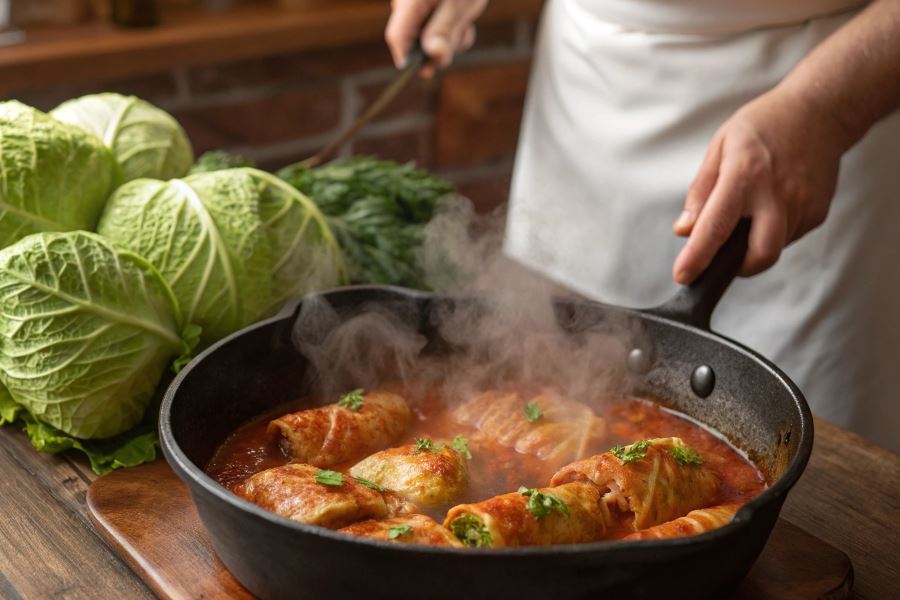 Odpowiednie przygotowanie gołąbków przed właściwym duszeniem ma kluczowe znaczenie dla końcowego efektu. Zacznij od blanszowania liści kapusty przez 2-3 minuty w osolonej wodzie, co nada im elastyczność i ułatwi zawijanie. Po napełnieniu liści farszem (najczęściej mieszanką ryżu z mięsem mielonym), zawiń je starannie, formując zwarte rulony.