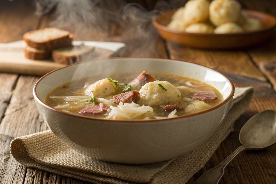 Kapuśniak z prazokami to wyjątkowe połączenie dwóch tradycyjnych elementów polskiej kuchni, które razem tworzą danie o głębokim zakotwiczeniu w naszej kulinarnej historii. Ta potrawa, łącząca kwaśną zupę na bazie kapusty z charakterystycznymi kluskami ziemniaczanymi, stanowi kwintesencję polskiej kuchni regionalnej.
