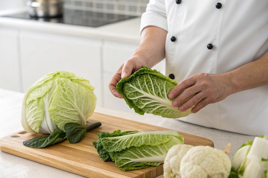 Kapusta włoska stanowi interesującą alternatywę, szczególnie cenioną przez osoby preferujące delikatniejszy smak. Jej pomarszczone liście są cieńsze i bardziej elastyczne, co ułatwia zawijanie farszu. Kapusta włoska nadaje gołąbkom subtelniejszy aromat i delikatniejszą strukturę. Wymaga jednak nieco krótszego czasu obróbki termicznej, by zachować swoje walory.
