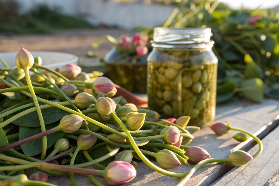 Zbiór pąków kwiatowych kaparu odbywa się wyłącznie o poranku, co stanowi kluczowy element zachowania ich jakości. Dlaczego właśnie wtedy? O świcie pąki są zamknięte i zawierają maksymalną ilość substancji aromatycznych. Wraz ze wzrostem temperatury pąki szybko się otwierają, tracąc swoje cenne właściwości. Dodatkowo, poranna rosa ułatwia zbiór, zmniejszając ryzyko uszkodzenia delikatnych pąków. Proces zbierania jest niezwykle pracochłonny – każdy pąk musi zostać zebrany ręcznie, co czyni kapary jedną z najdroższych przypraw na świecie.