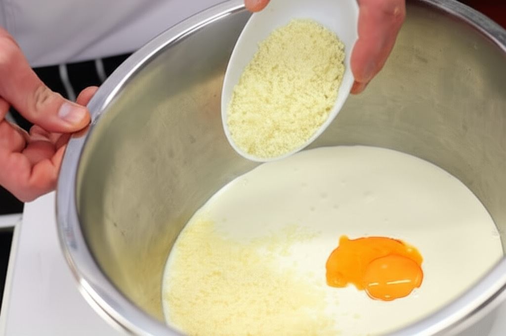 W osobnej misce połącz śmietanę, żółtka i ser parmezan.