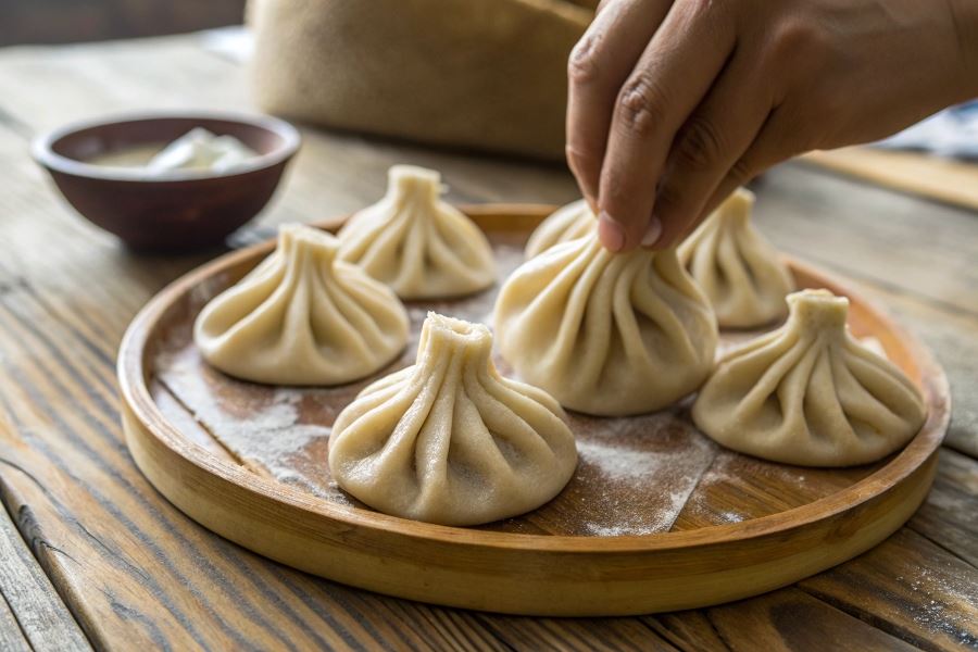 Formowanie cienkiego chinkali wymaga precyzji i wprawy. Kumycy stosują technikę „szesnastu fałd” – ciasto z nadzieniem składa się w charakterystyczną sakiewkę z dokładnie 16 zakładkami, które zbiegają się w jednym punkcie na szczycie. Lezgini z kolei preferują nieco mniejsze chinkali z 12-14 zakładkami.