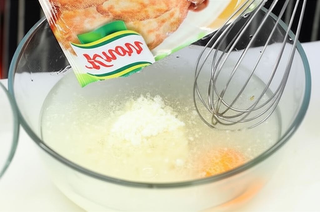 Wymieszaj Knorr z wodą oraz jajkiem zgodnie z instrukcją zamieszczoną na opakowaniu.
