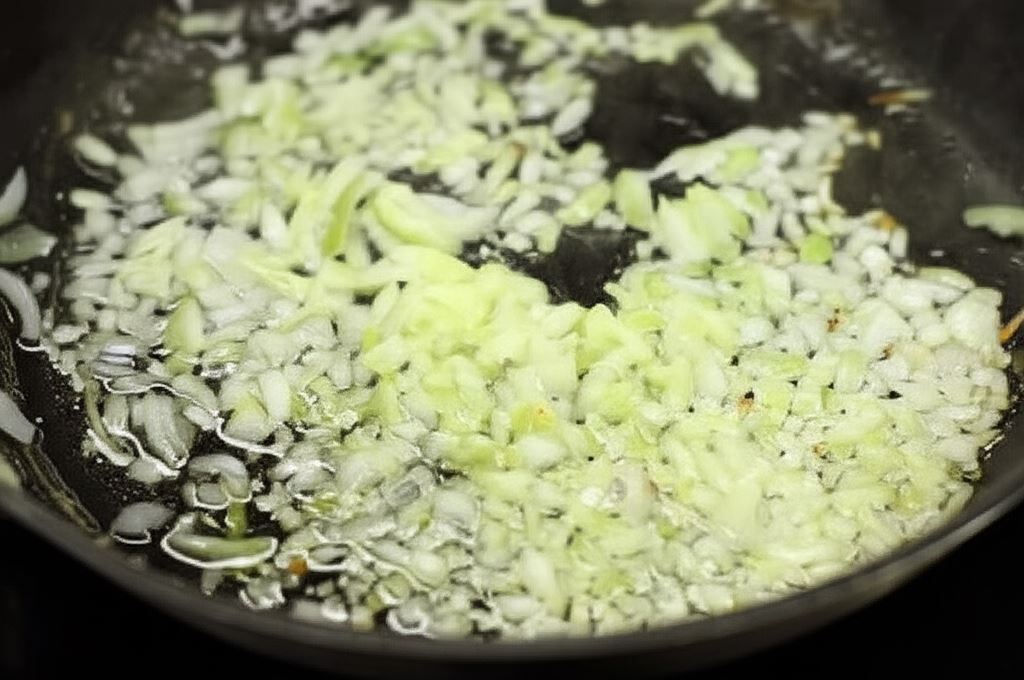 Cebulę posiekaj w kostkę i zrumień na oleju.