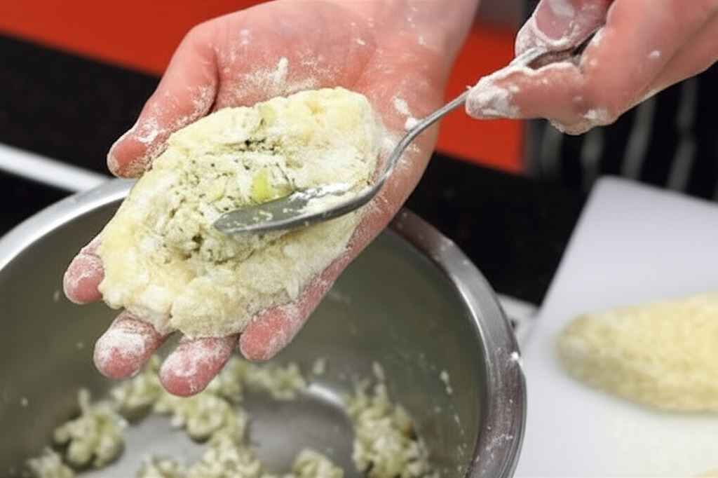 Kształtuj z ciasta spore cepeliny i wypełniaj je farszem. Kluskom nadawaj formę dużych cygar. W razie konieczności podsypuj ciasto mąką.