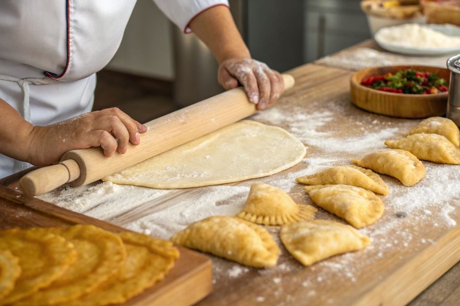 Perfekcyjne czebureki wymagają odpowiedniego przygotowania ciasta przaśnego. Kluczem do sukcesu jest uzyskanie cienkiej, ale wytrzymałej warstwy ciasta o grubości około 2-3 mm. Najlepsze rezultaty osiąga się stosując wałek z regulowaną grubością lub tradycyjny drewniany wałek z pierścieniami dystansowymi.