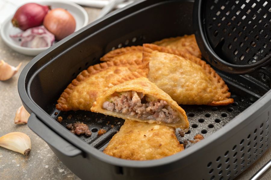 Czebureki przygotowane w airfryerze zachowują charakterystyczną chrupkość zewnętrznej warstwy ciasta, jednocześnie pozostawiając wnętrze soczyste i aromatyczne. Gorące powietrze cyrkulujące w urządzeniu zapewnia równomierne opiekanie ze wszystkich stron.
