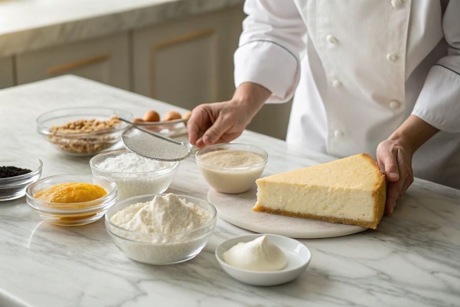 Wskazówka eksperta: Aby uzyskać idealną konsystencję, przesiej mąki i skrobie przed dodaniem do masy serowej. Zapobiegnie to powstawaniu grudek i zapewni równomierne rozprowadzenie w masie.