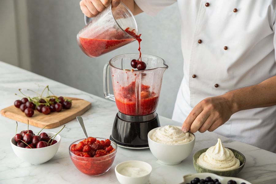 Blendery kielichowe z funkcją kruszenia lodu pozwalają na przygotowanie ekspresowego sorbetu wiśniowego z zamrożonych owoców w zaledwie 3 minuty.