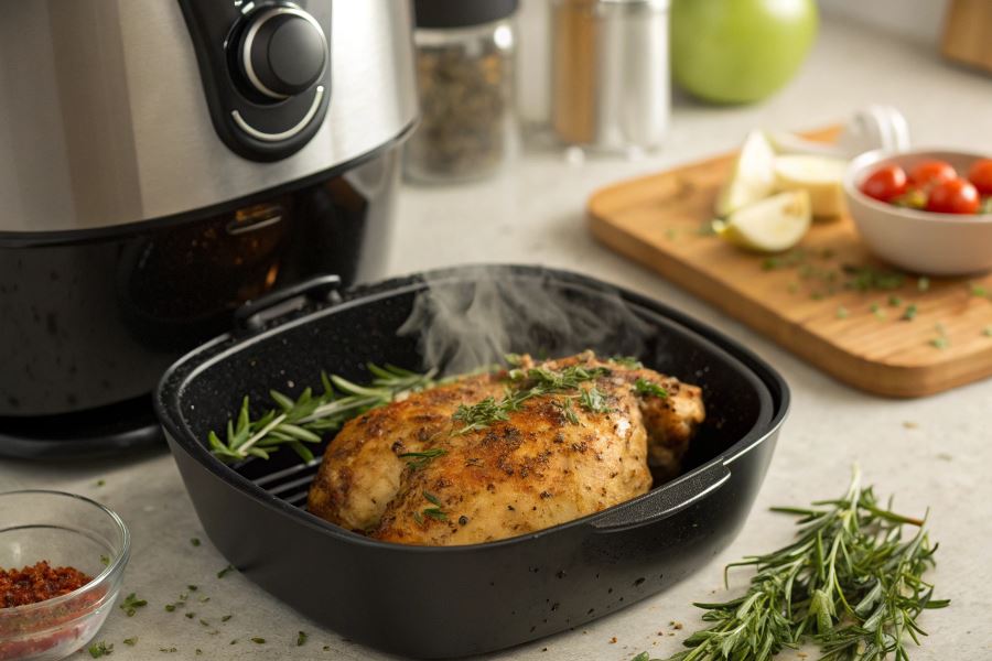 Airfryer to prawdziwy sprzymierzeniec w kuchni, gdy zależy nam na soczystej piersi kurczaka o idealnie chrupiącej skórce. Technologia gorącego powietrza cyrkulującego wokół mięsa sprawia, że pierś kurczaka zachowuje wilgotność wewnątrz, jednocześnie zyskując apetyczną teksturę na zewnątrz – wszystko to przy minimalnym użyciu tłuszczu i w czasie krótszym niż przy tradycyjnych metodach.
