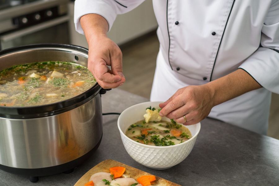 - Wybierz program „Zupa” lub „Wolne gotowanie