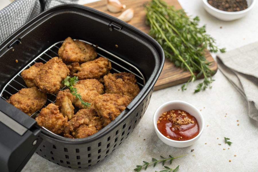 Wątróbka drobiowa przygotowana w urządzeniu typu airfryer zyskuje wyjątkową teksturę – chrupiącą z zewnątrz i soczyście delikatną w środku. Ten efekt osiągamy dzięki cyrkulacji gorącego powietrza, które otacza produkt ze wszystkich stron, zapewniając równomierne przygotowanie bez konieczności ciągłego mieszania.