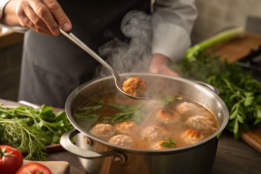 Najlepszą metodą dodawania klopsików do zupy jest wrzucanie ich do wrzącej cieczy, a następnie zmniejszenie mocy grzania do poziomu lekkiego wrzenia. Technika ta zapewnia: