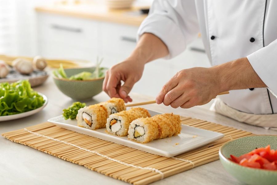 Krok po kroku: jak zrobić sushi z kurczakiem w tempurze