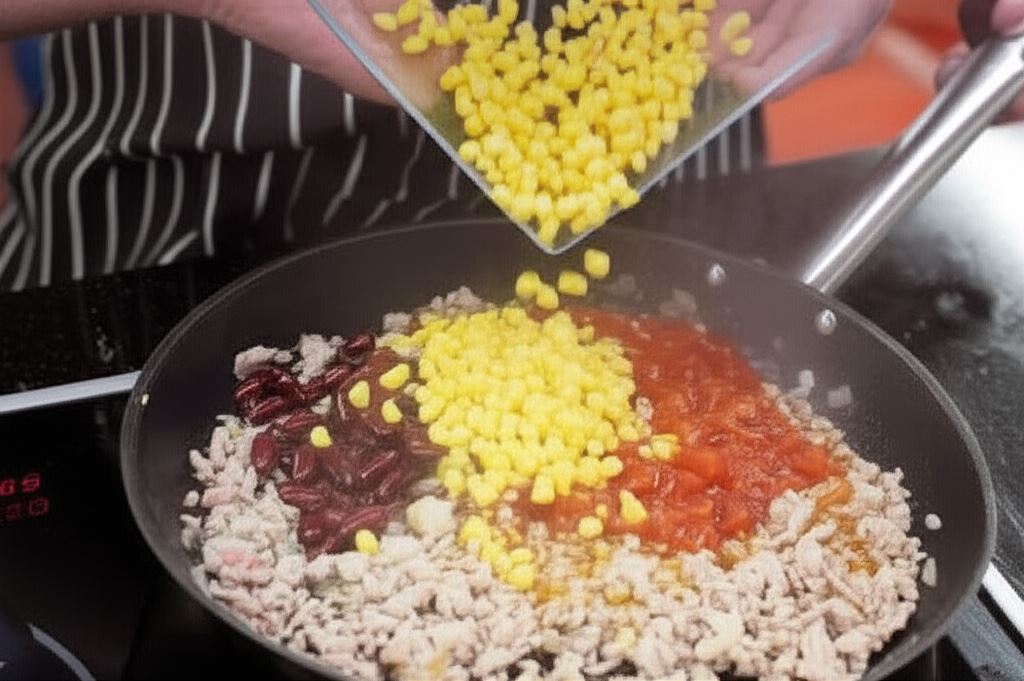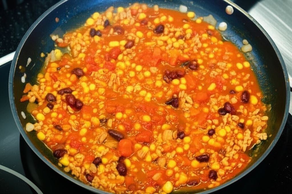 Przygotowanie tego kulinarnego hitu jest zaskakująco proste. Wystarczy podsmażyć cebulkę do złocistego koloru, dodać mięso wieprzowo-wołowe, a następnie połączyć z pomidorami, fasolą i kukurydzą. Sekret wyjątkowego smaku tkwi w odpowiednio dobranych przyprawach, które nadają potrawie charakterystycznego, głębokiego aromatu.