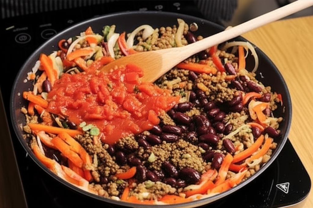 Chili sin carne to aromatyczne, rozgrzewające danie, które zachwyci każdego miłośnika kuchni meksykańskiej. Ta bezmięsna wersja klasycznego chili łączy w sobie intensywny smak pomidorów, czerwonej fasoli i roślinnego mięsa mielonego z wyrazistymi przyprawami. Sekret udanego chili sin carne tkwi w odpowiednim podsmażeniu cebuli, papryki i czosnku, które stanowią bazę smakową całej potrawy. Danie dusimy powoli, by wszystkie składniki idealnie się połączyły, tworząc gęsty, aromatyczny sos, który doskonale komponuje się z ryżem lub pieczywem.