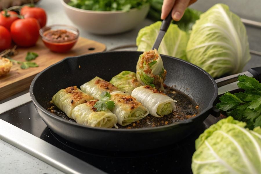Smażenie gołąbków z kapusty pekińskiej wymaga precyzji: