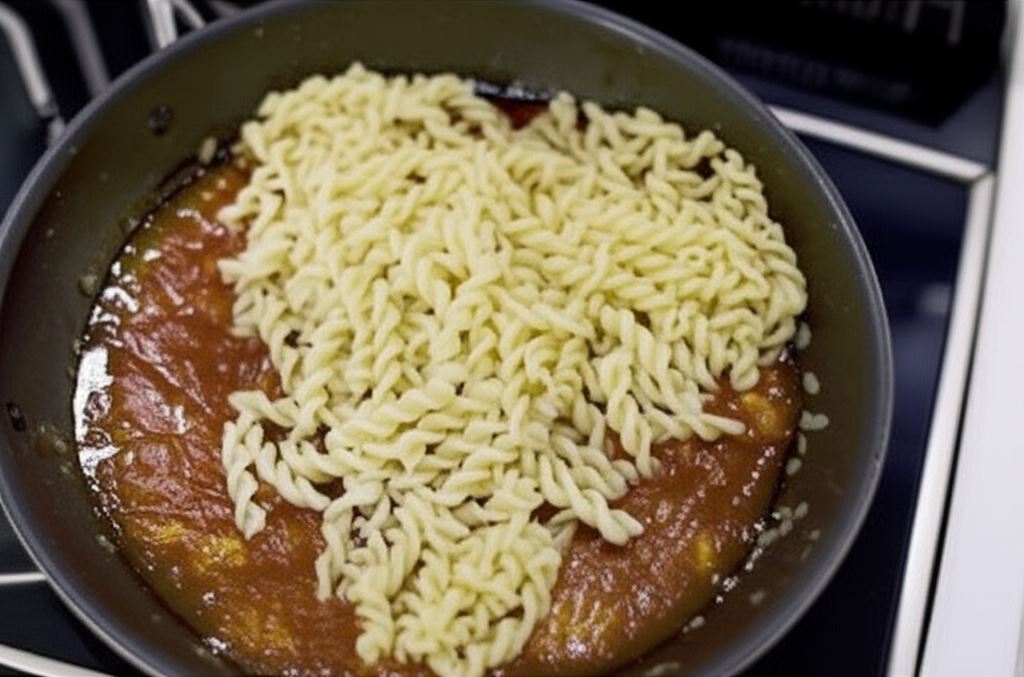 Makaron połącz z przygotowanym sosem i przypraw pokruszoną mini kostką Knorr. Całość przenieś do natłuszczonego oliwą naczynia żaroodpornego.