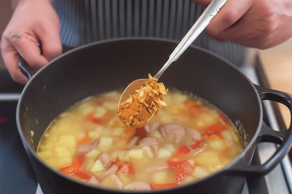 Chłopski garnek możesz przygotować w wersji wegańskiej, dodając wędzoną paprykę dla uzyskania charakterystycznego aromatu. Zamiast tradycyjnej kiełbasy możesz użyć różnych rodzajów wędlin – świetnie sprawdzą się parzone i wędzone kiełbasy oraz szynki (z wyjątkiem dojrzewających).