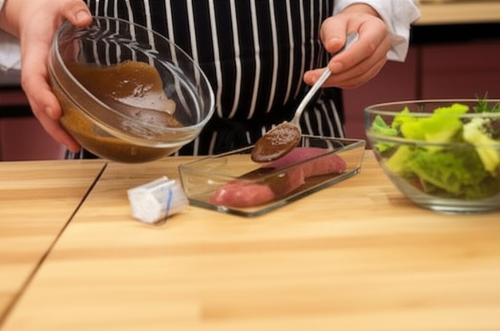 Sekret tego dania tkwi w marynacie, która nadaje mięsu niepowtarzalny aromat i sprawia, że każdy kęs rozpływa się w ustach. Polędwiczki upieczone w woreczku zachowują swoją soczystość, a ułożone na świeżej sałacie z dodatkiem pomidorów, cebuli i sera pleśniowego tworzą harmonijną całość. Całość skropiona delikatnym sosem i posypana pestkami słonecznika lub orzechami to prawdziwa uczta dla zmysłów!