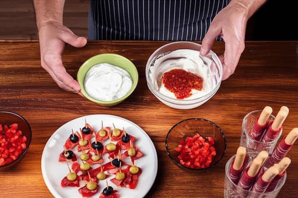 Dipy możesz wzbogacić o różne warianty smakowe – dodaj posiekane oliwki, suszone pomidory lub kapary do serka homogenizowanego. Możesz też przygotować trzeci dip na bazie awokado z dodatkiem limonki i kolendry. Paluszki grissini świetnie komponują się również z plastrami melona lub świeżymi figami.